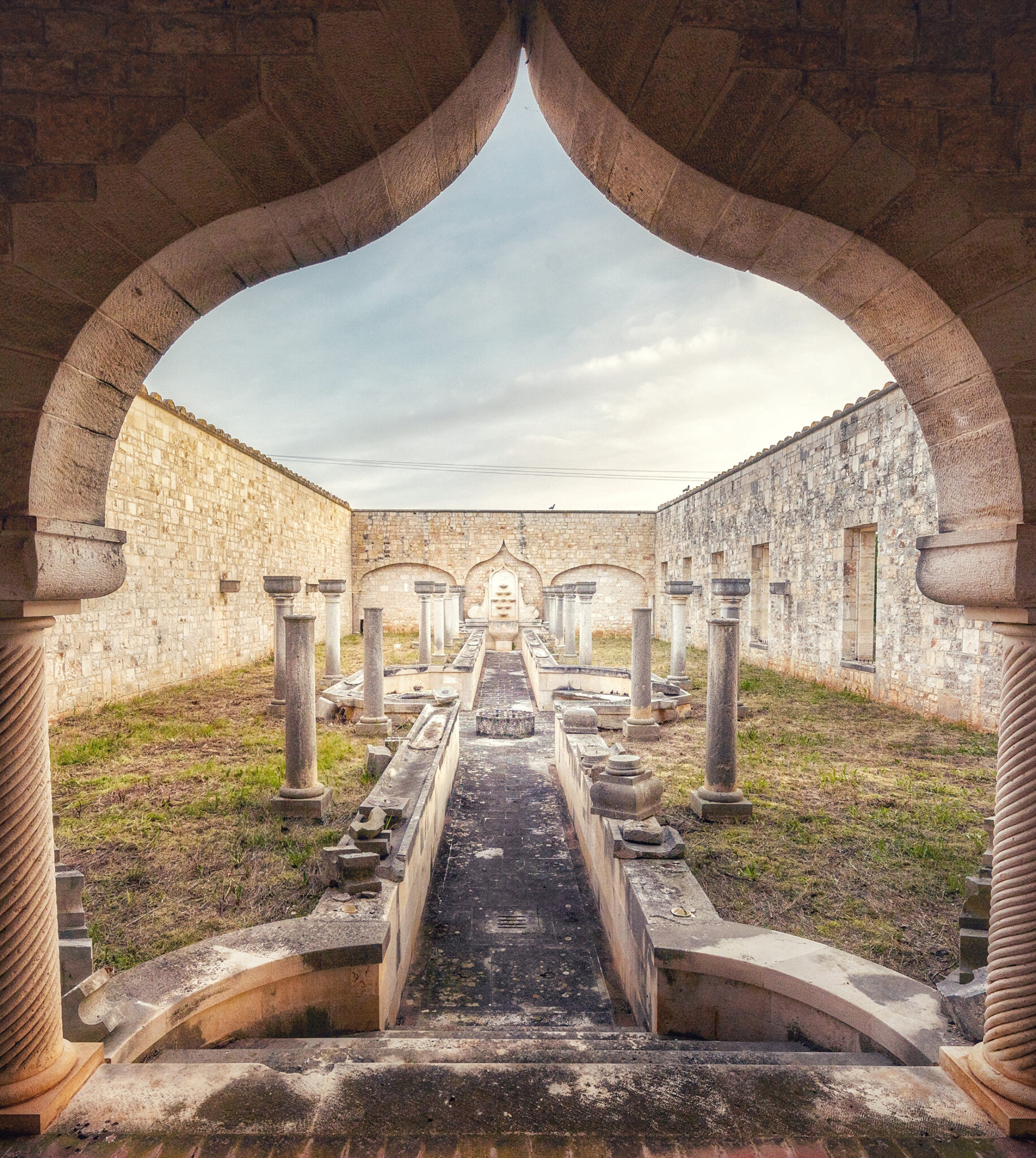 L’abbandono, però, era ovunque. Le vasche destinate alle abluzioni giacevano asciutte, riempite solo da detriti e ombre, come se l’acqua avesse deciso di ritirarsi con discrezione, lasciando dietro di sé il ricordo della purificazione. L’erba cresceva senza permesso tra le pietre, eppure non sembrava violare nulla: era una forma di continuità, una nuova preghiera vegetale che si insinua dove un tempo le mani si lavavano prima di rivolgersi a Dio.
